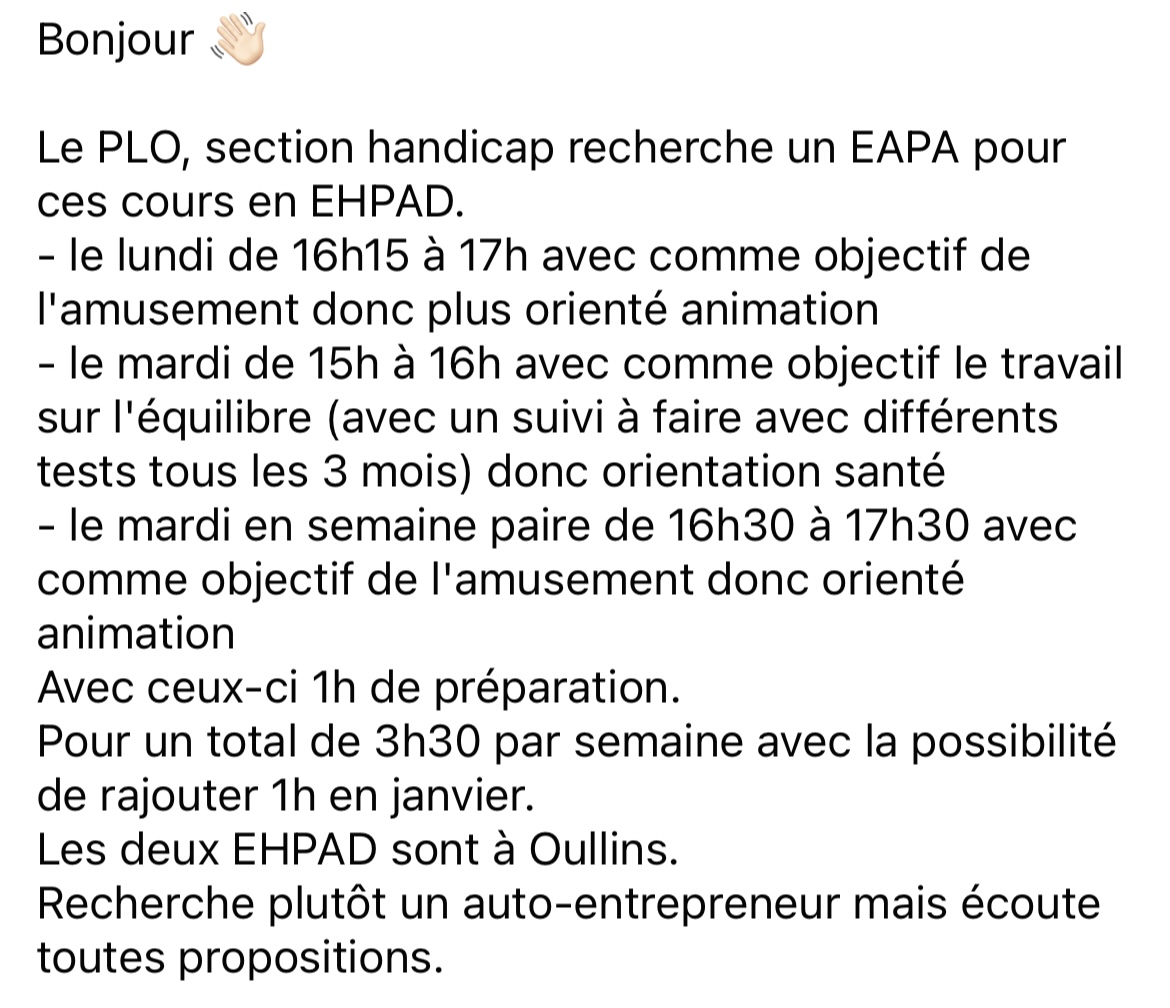 Le métier d’enseignant APA est recherché ! Il suffit de regarder les demandes sur les groupes Facebook 👇
